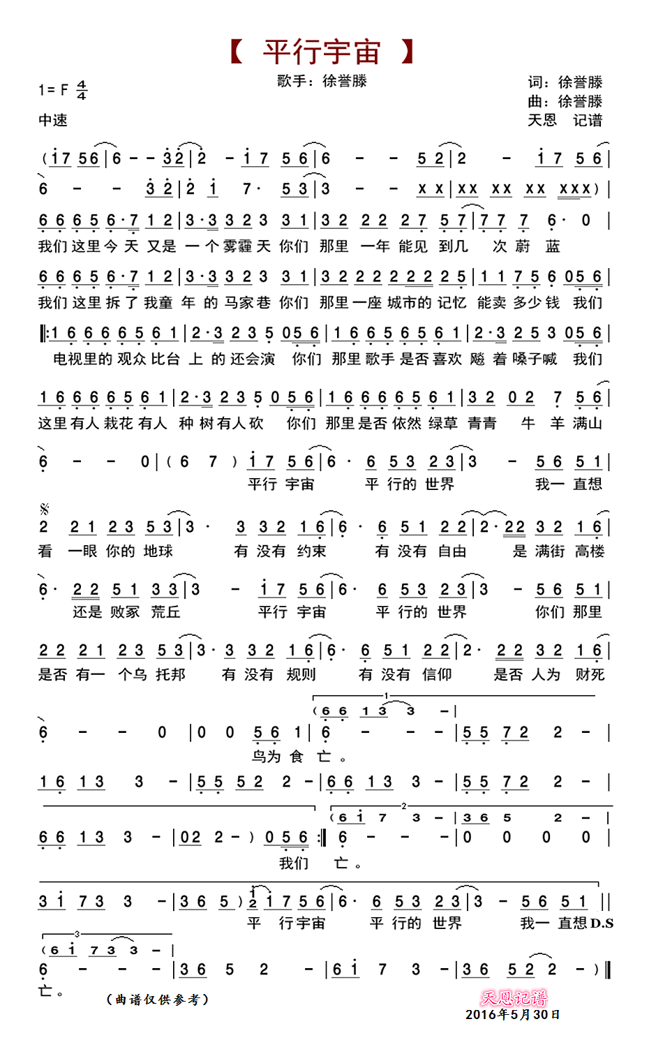- [二胡谱,歌谱] 深深深深 徐誉滕