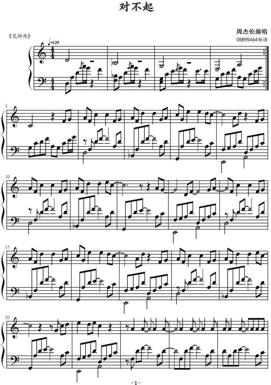 - [钢琴谱,歌谱] 对不起