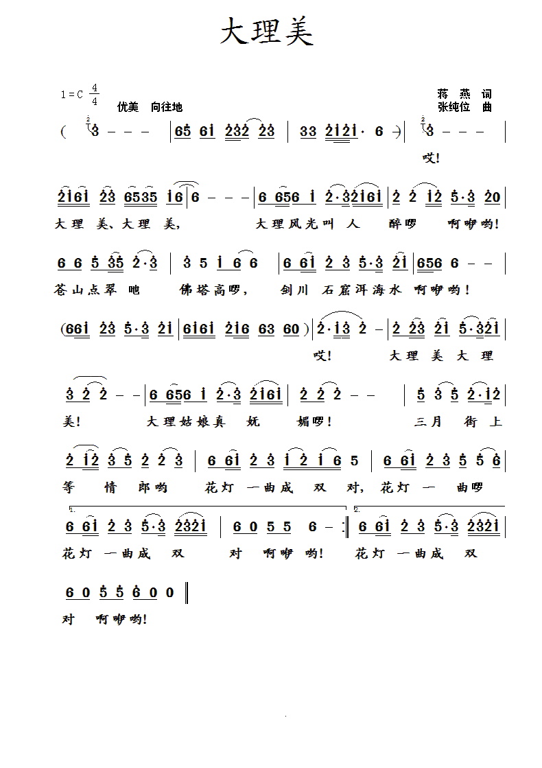 - [歌谱] 大理美