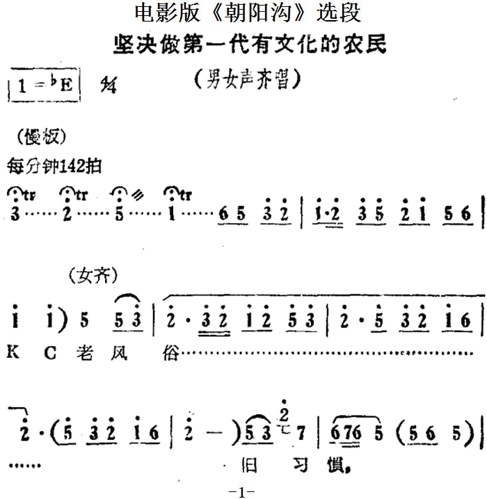 > 坚决做第一代有文化的农民 电影版 朝阳沟 选段 男女声齐唱