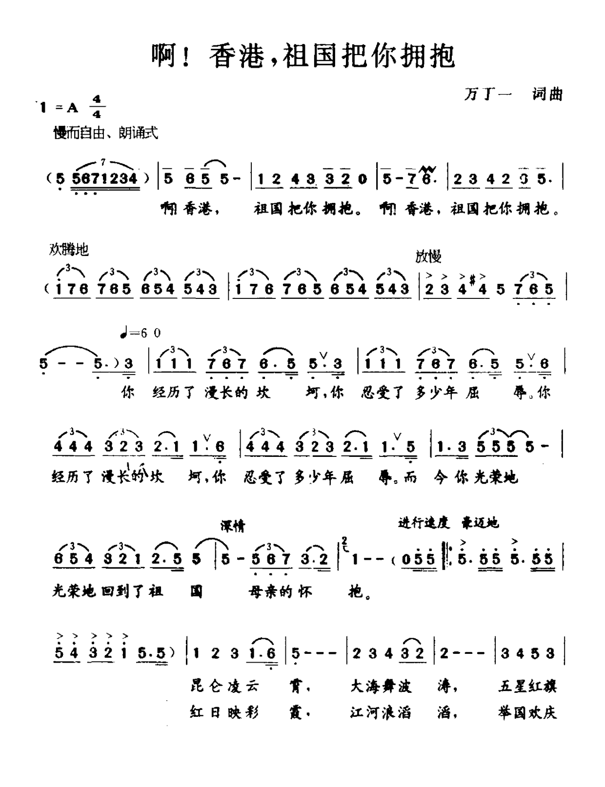 > 啊 香港 祖国把你拥抱