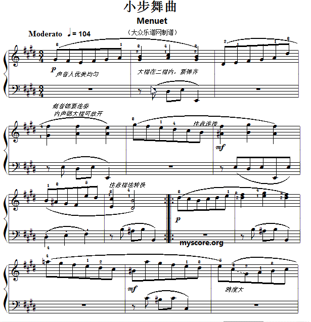 > 巴赫初级钢琴曲之十五 小步舞曲 附演奏提示