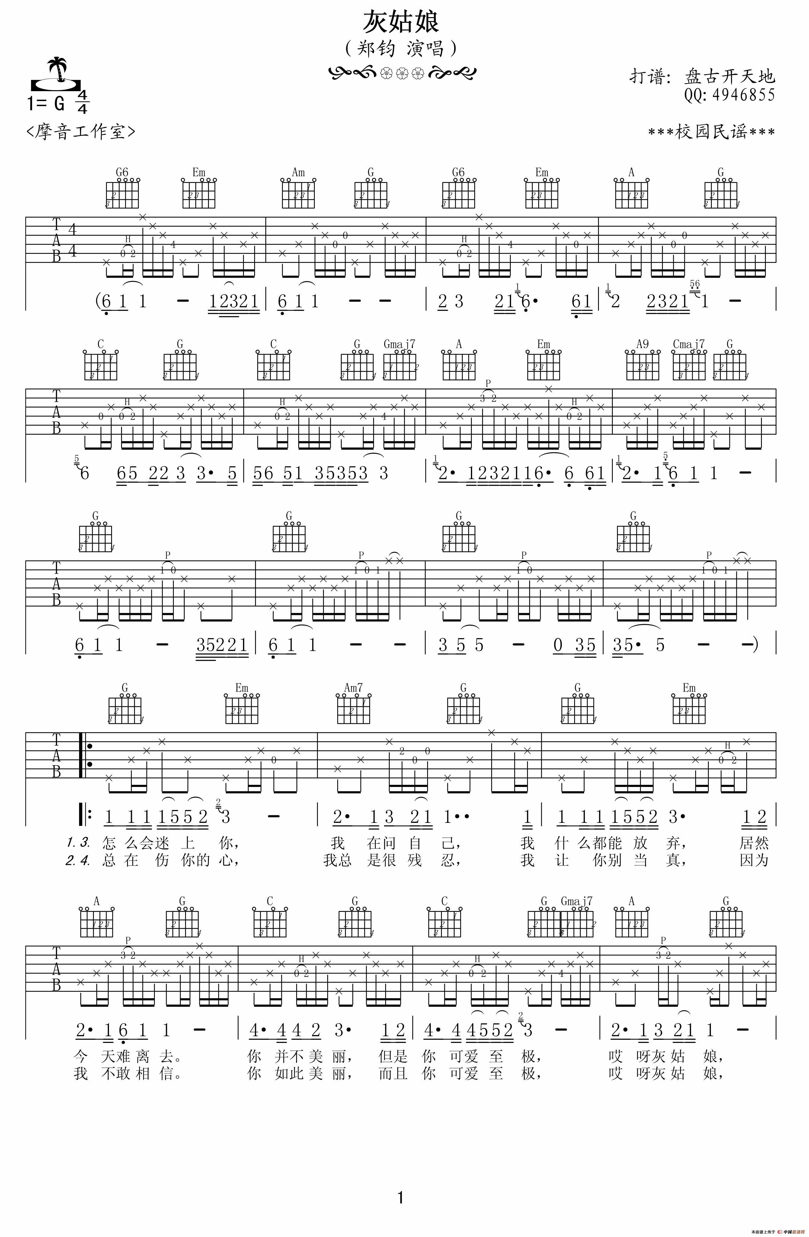 > 灰姑娘 盘古开天地制谱版