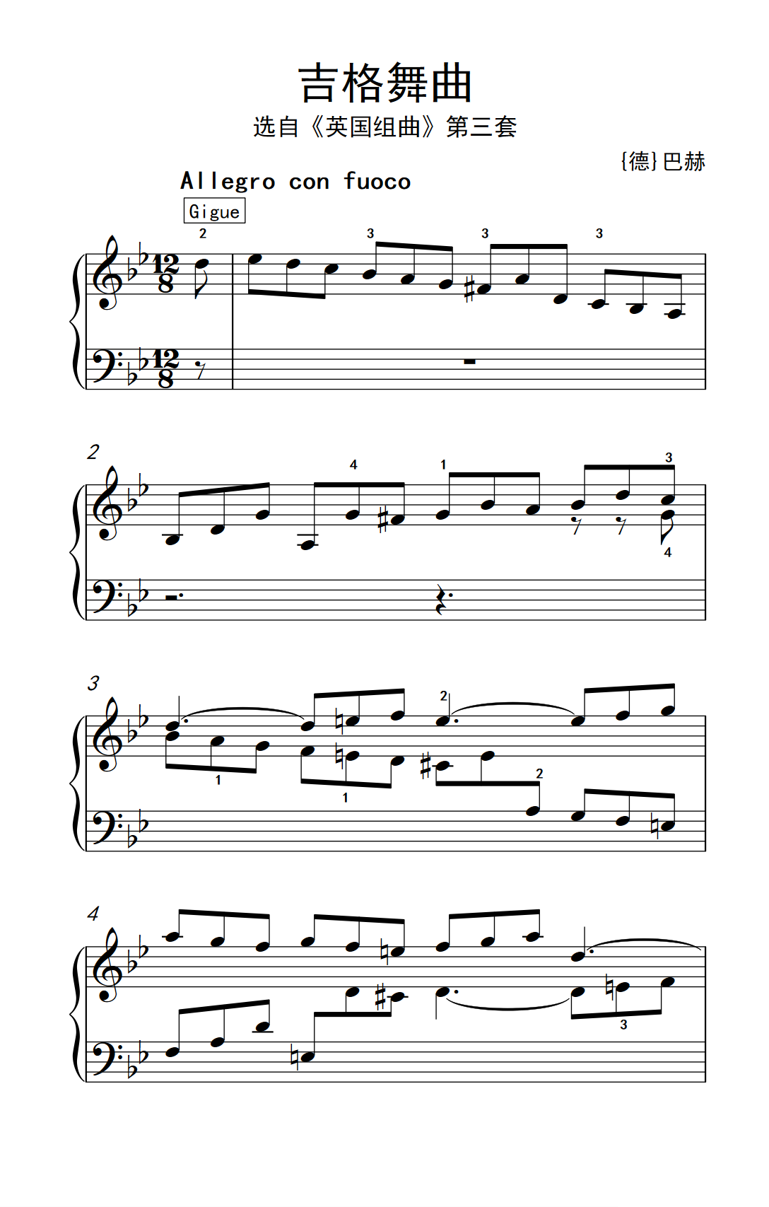 > 第九级1 吉格舞曲 选自 英国组曲 第三套 中央音乐学院 钢琴 业余 考级教程 7 9级