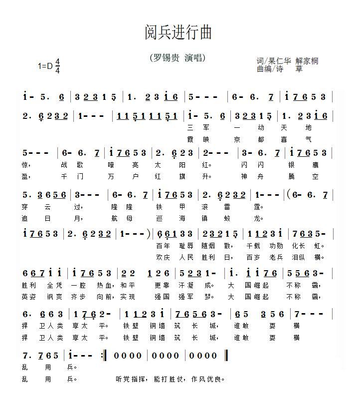 - [歌谱] 阅兵进行曲