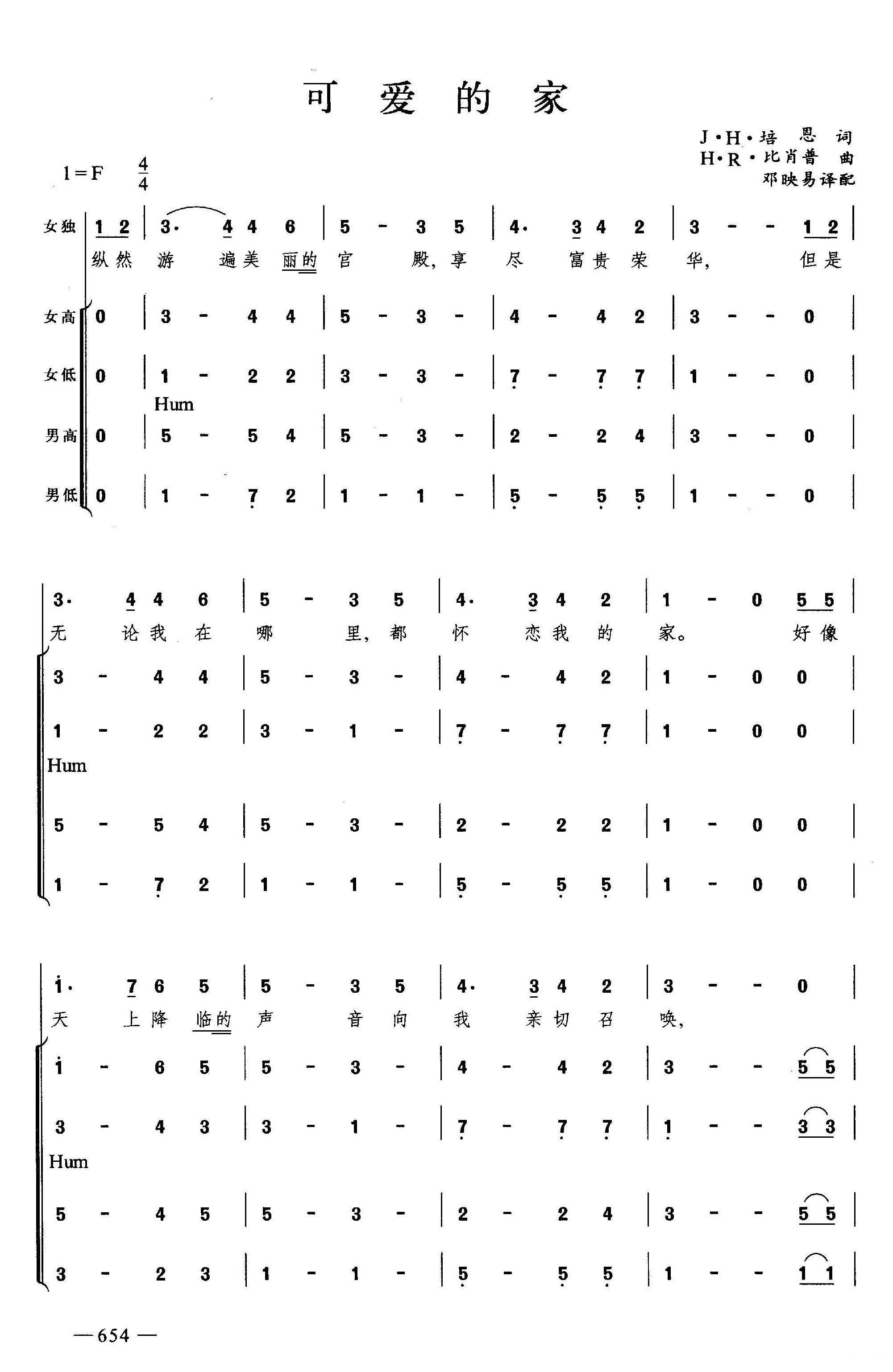 可爱的家 合唱 邓映易译配
