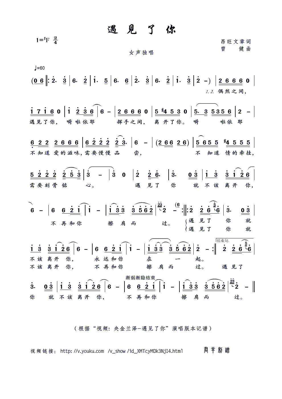 - [歌谱] 爱琴海 视频 央金兰泽 爱琴海 本