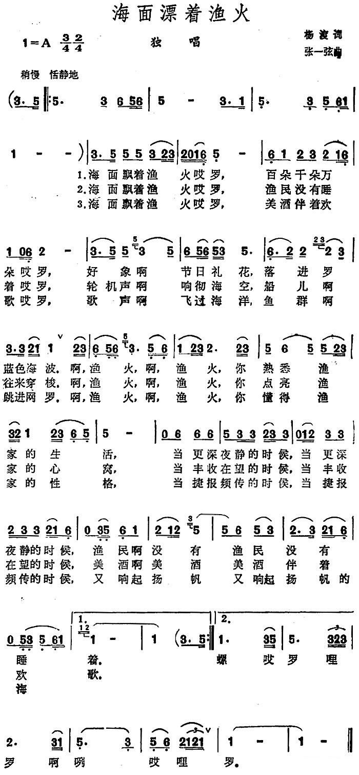 - [歌谱] 海面飘着渔火