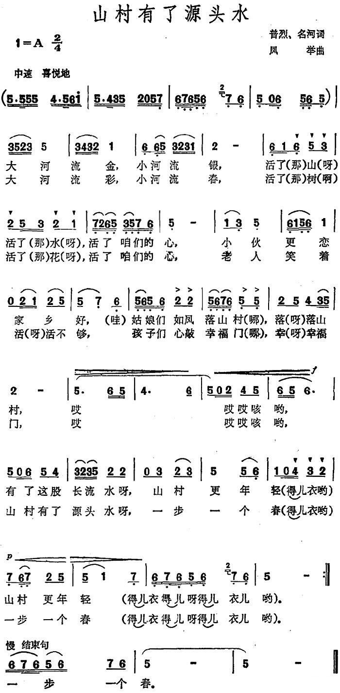 - [歌谱] 山寨有了源头水