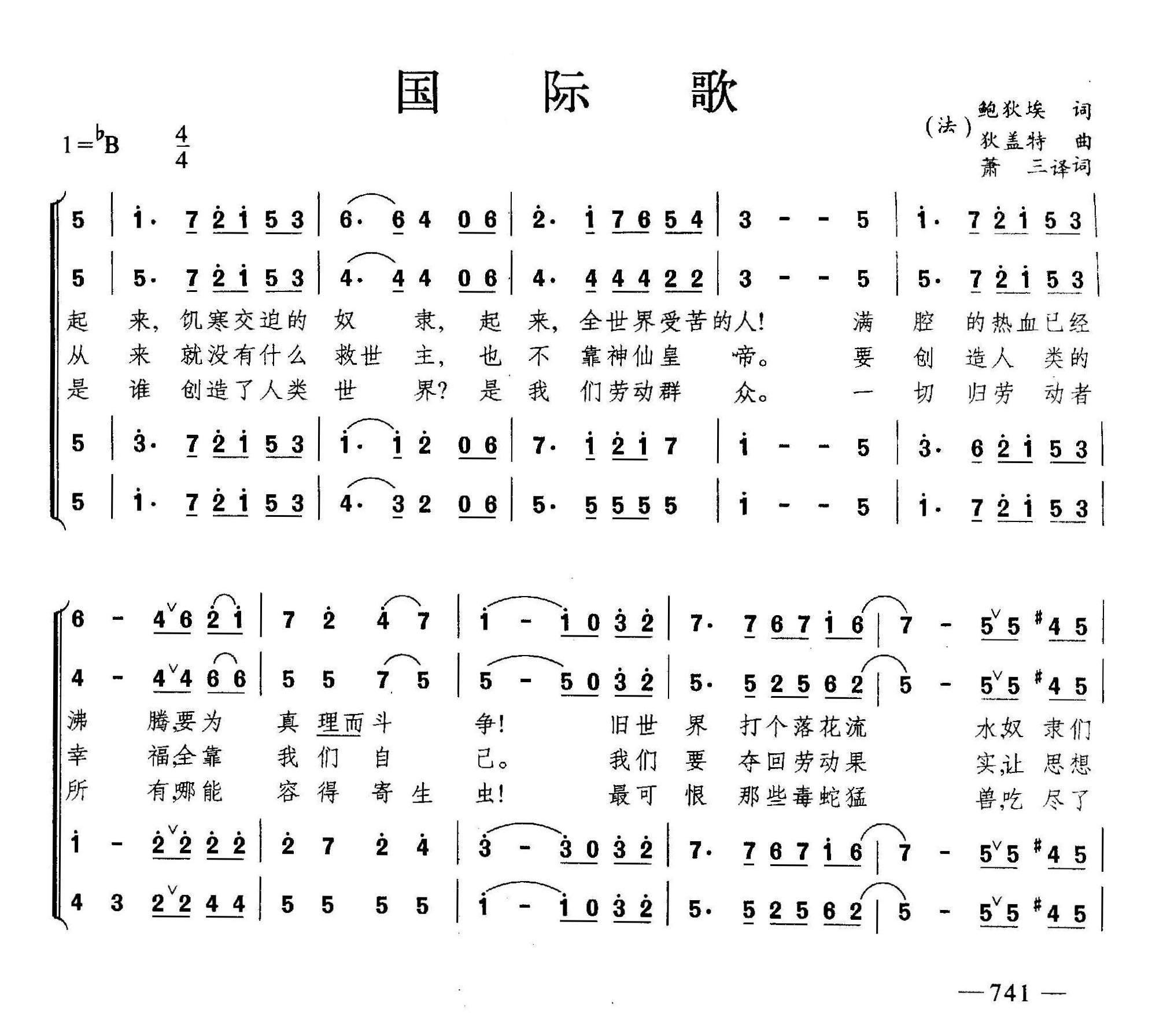 - [歌谱] 国际歌 合唱