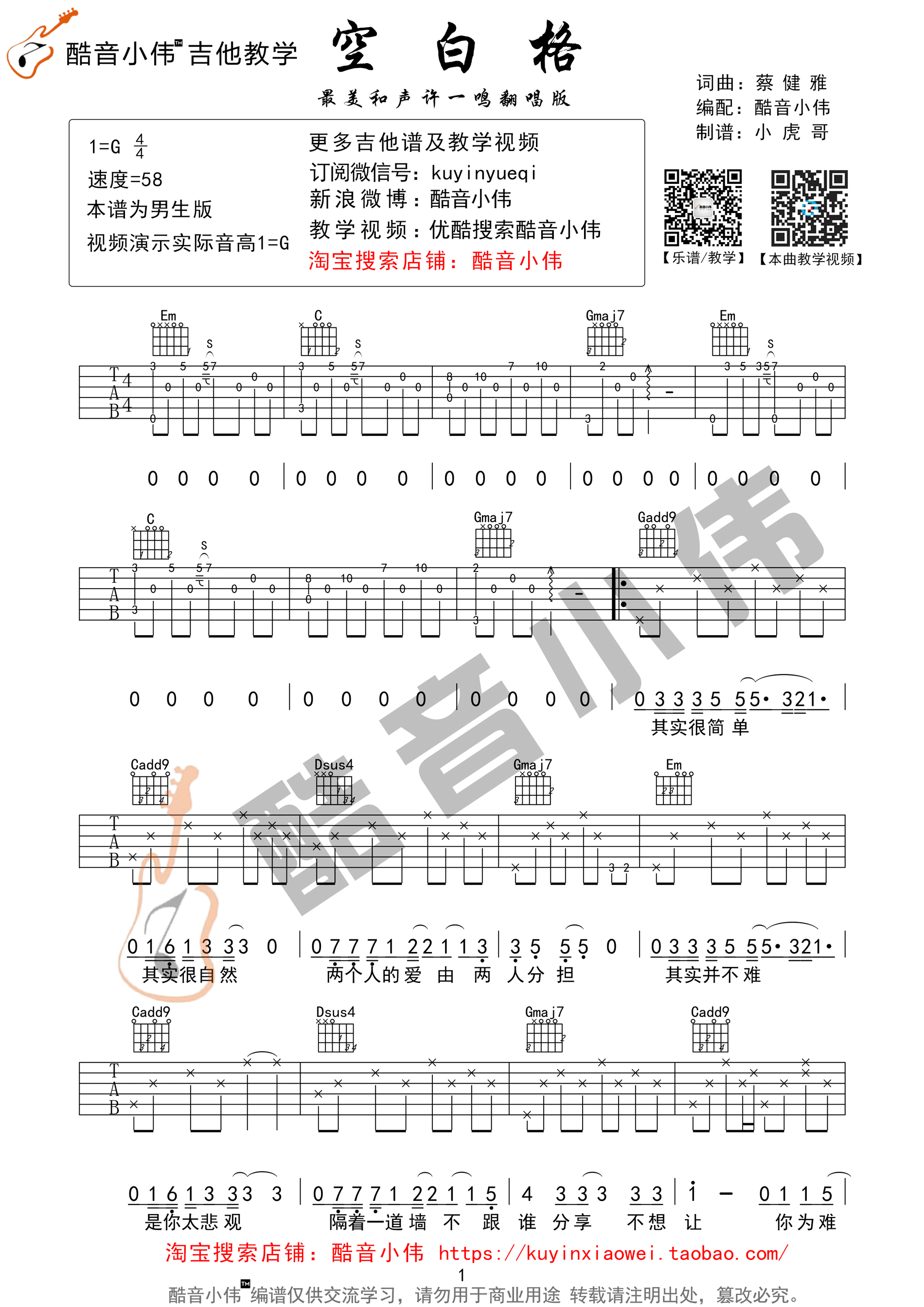 斑马斑马 C调带前奏间奏酷音小伟编谱