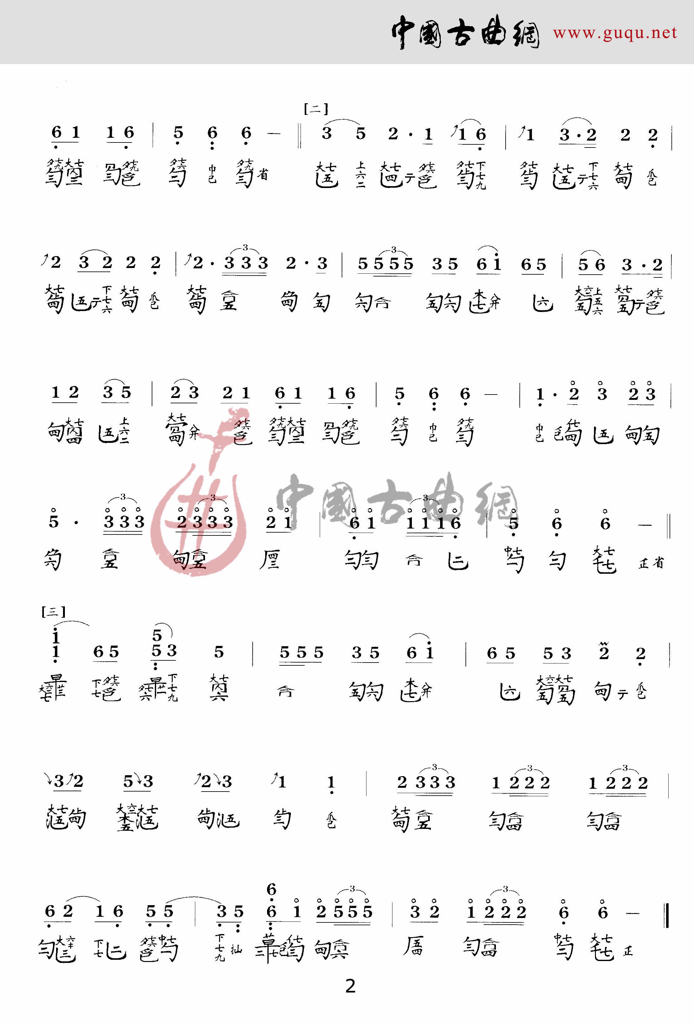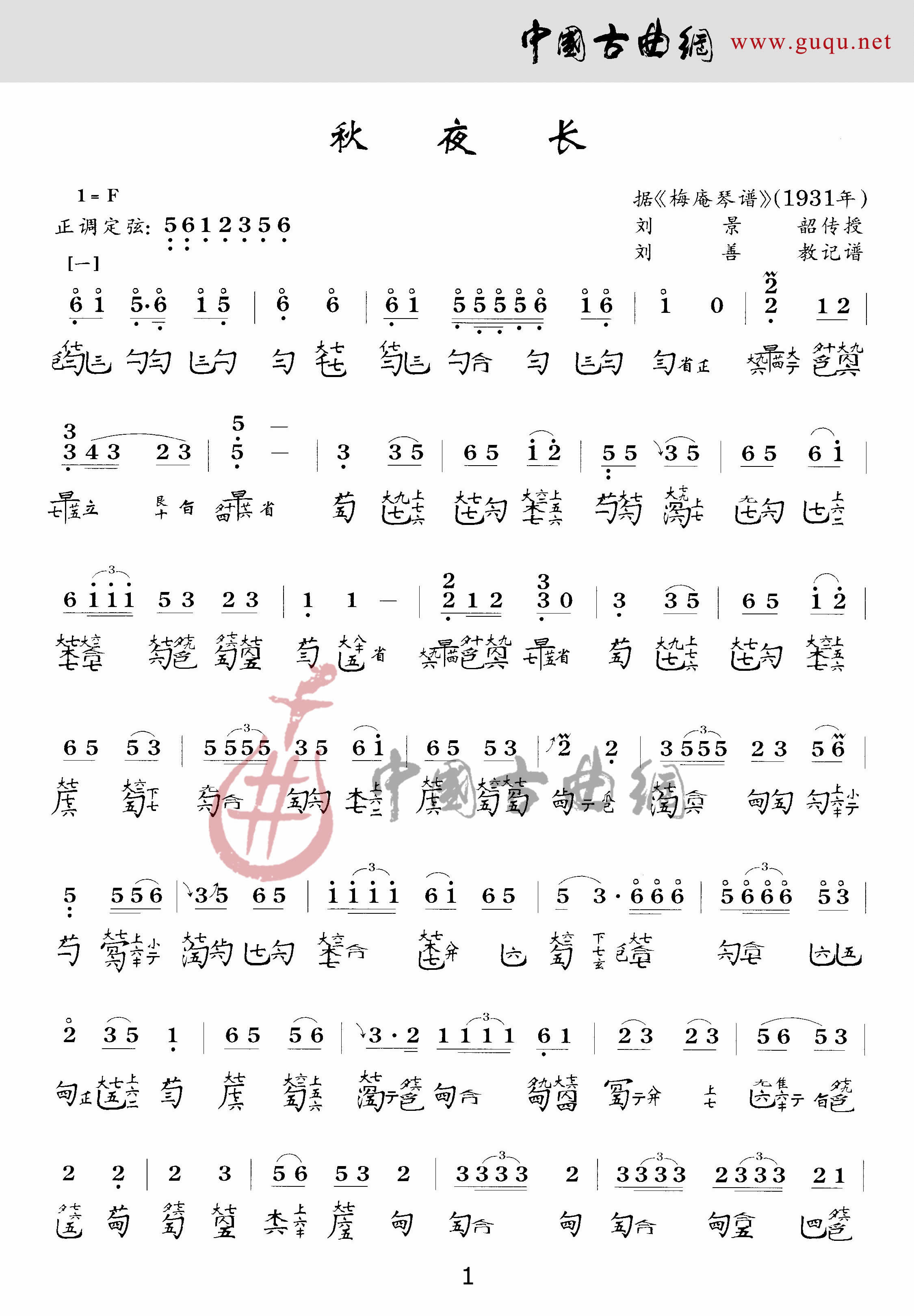 - [歌谱] 秋夜长 古琴谱 减字谱