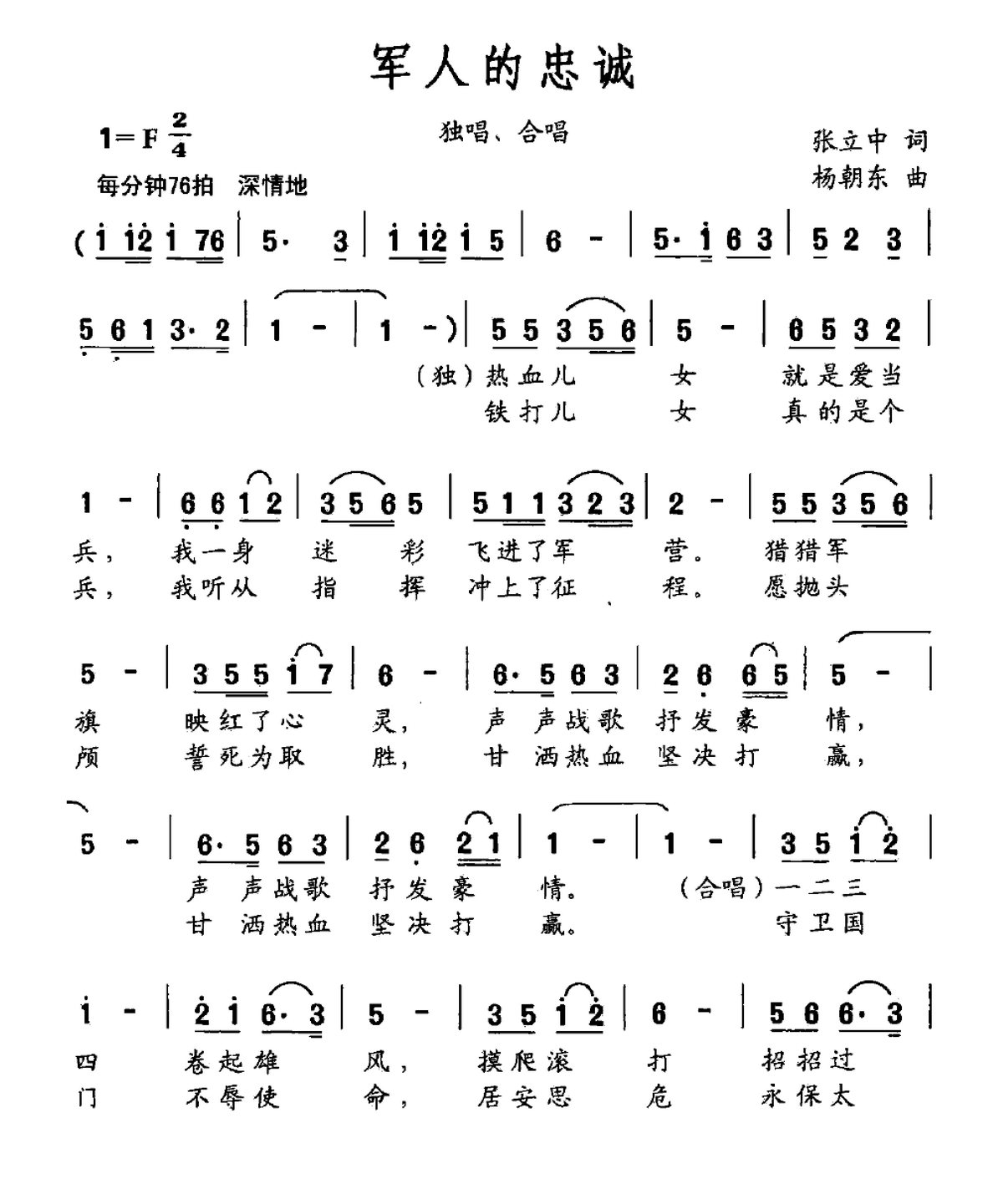 - [歌谱] 军人的忠诚