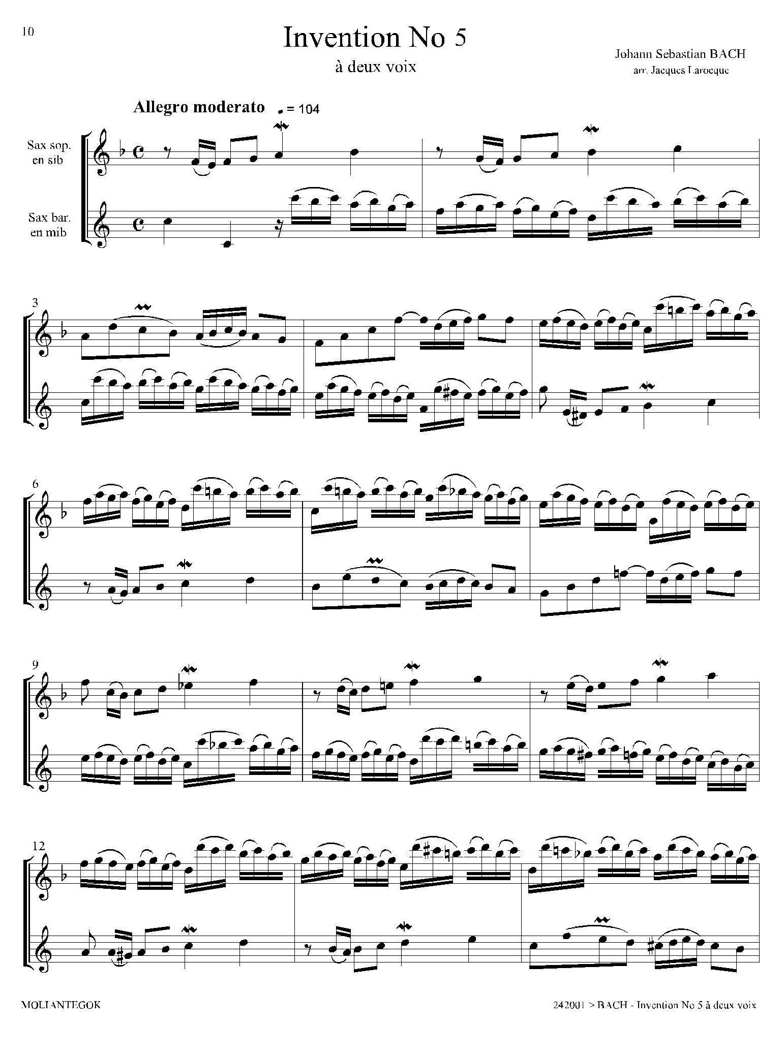 > Inventions 巴赫15首创意曲 二重奏 5