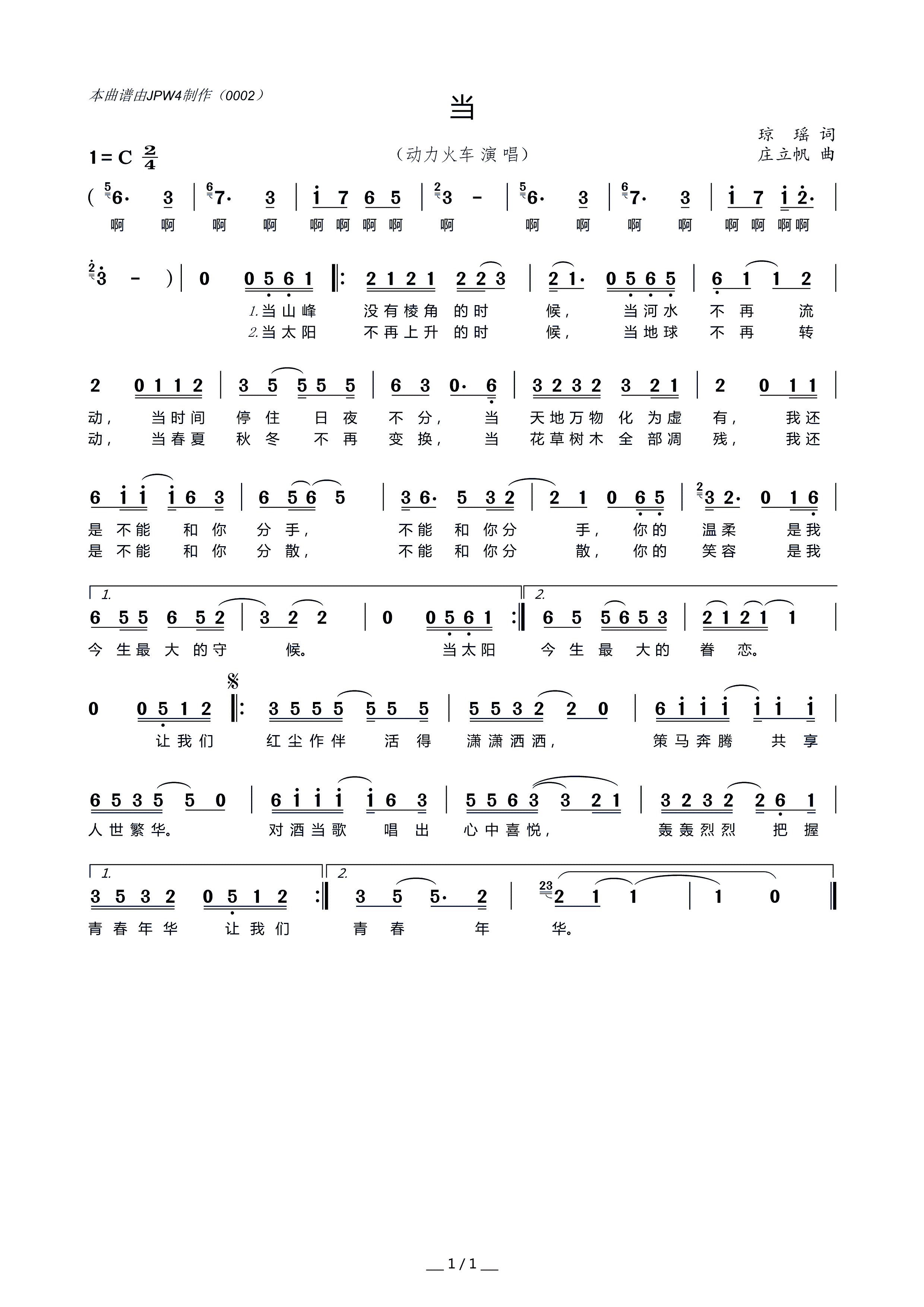 - [歌谱] 当 动力火车