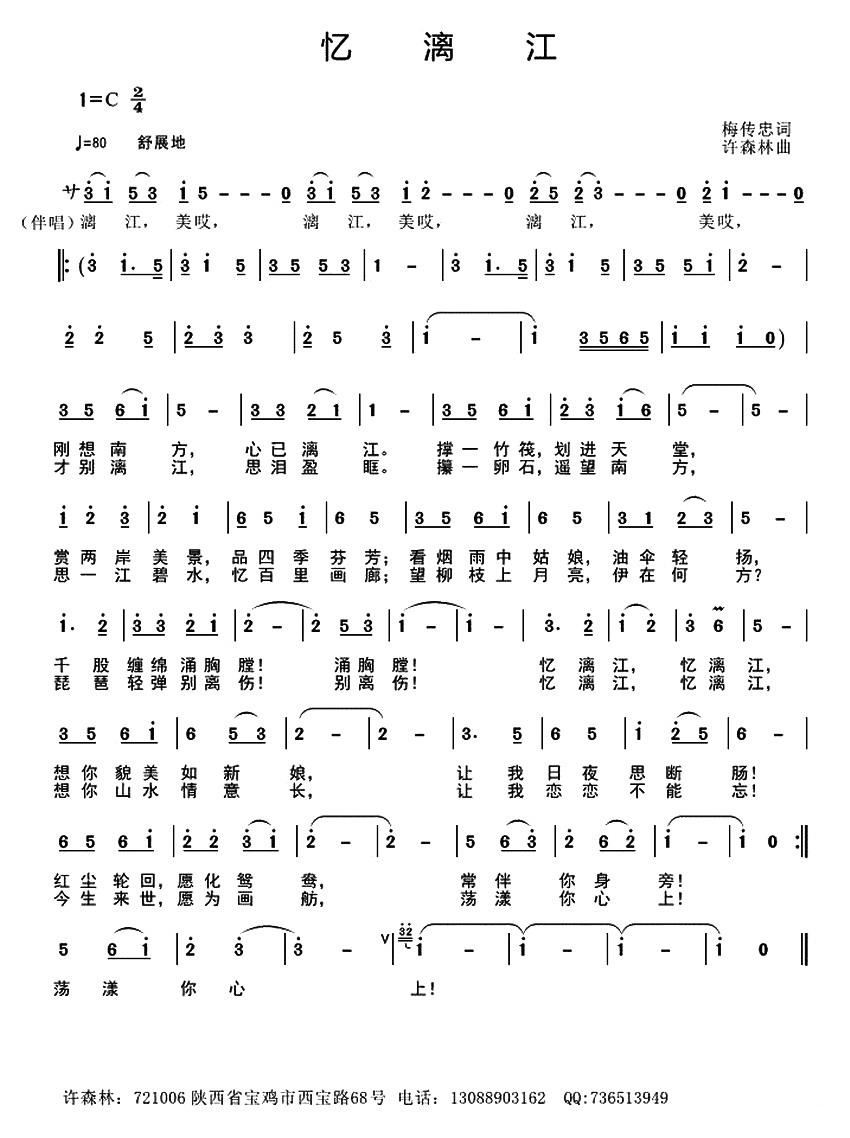 - [歌谱] 漓江 情歌
