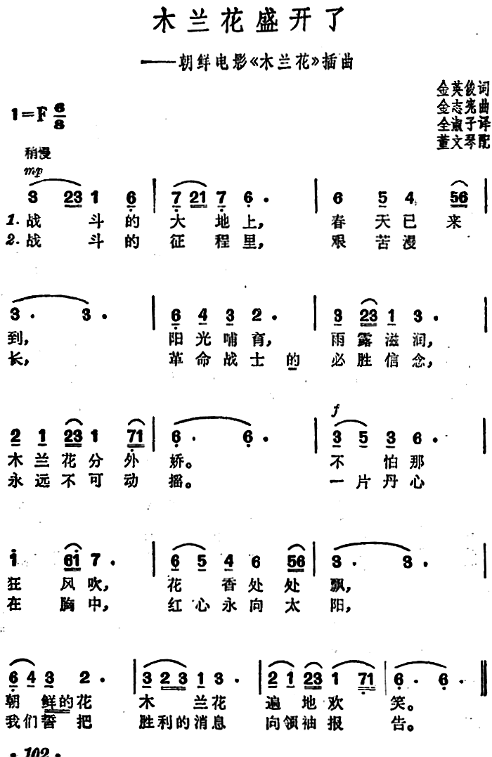 木兰花盛开了 朝鲜电影 木兰花 插曲