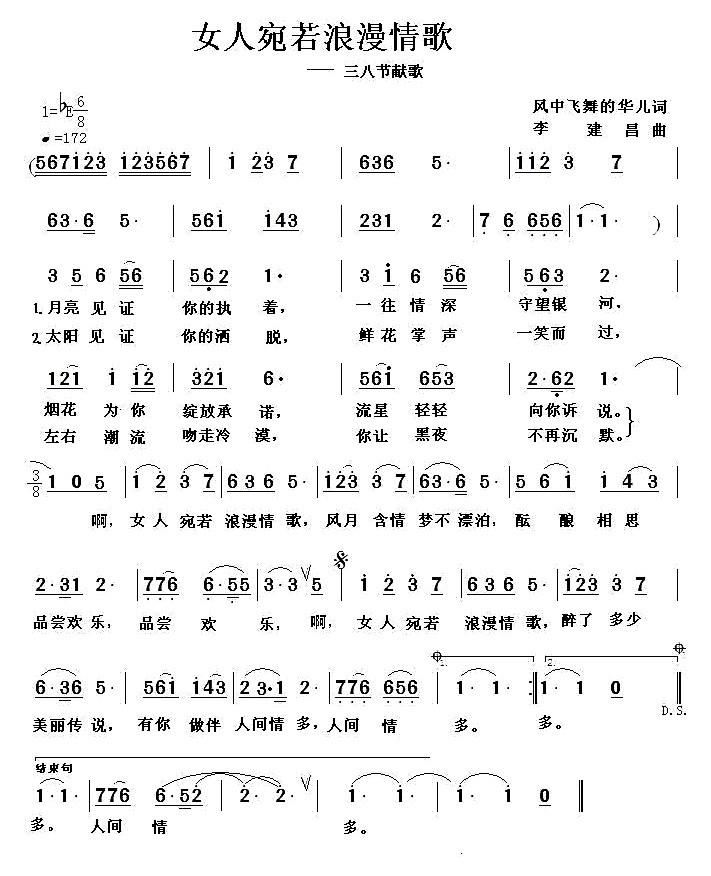 - [歌谱] 女人宛若浪漫情歌
