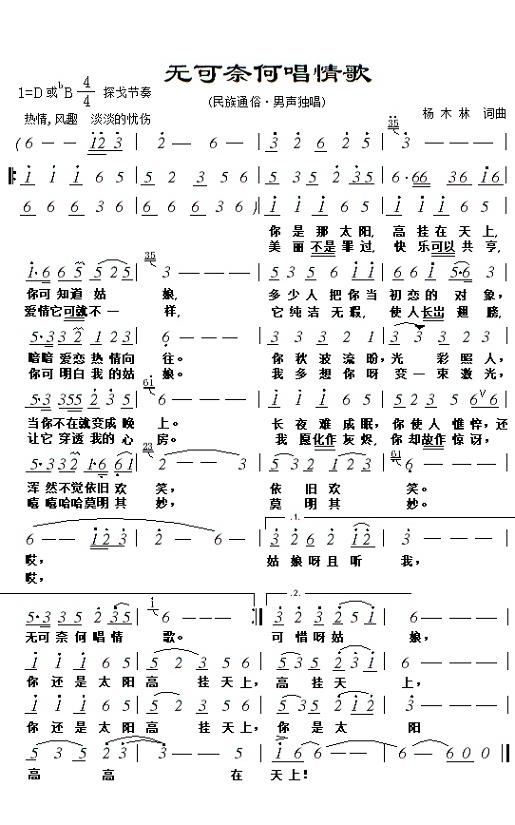 - [歌谱] 日 无可奈何 秦咏诚配歌