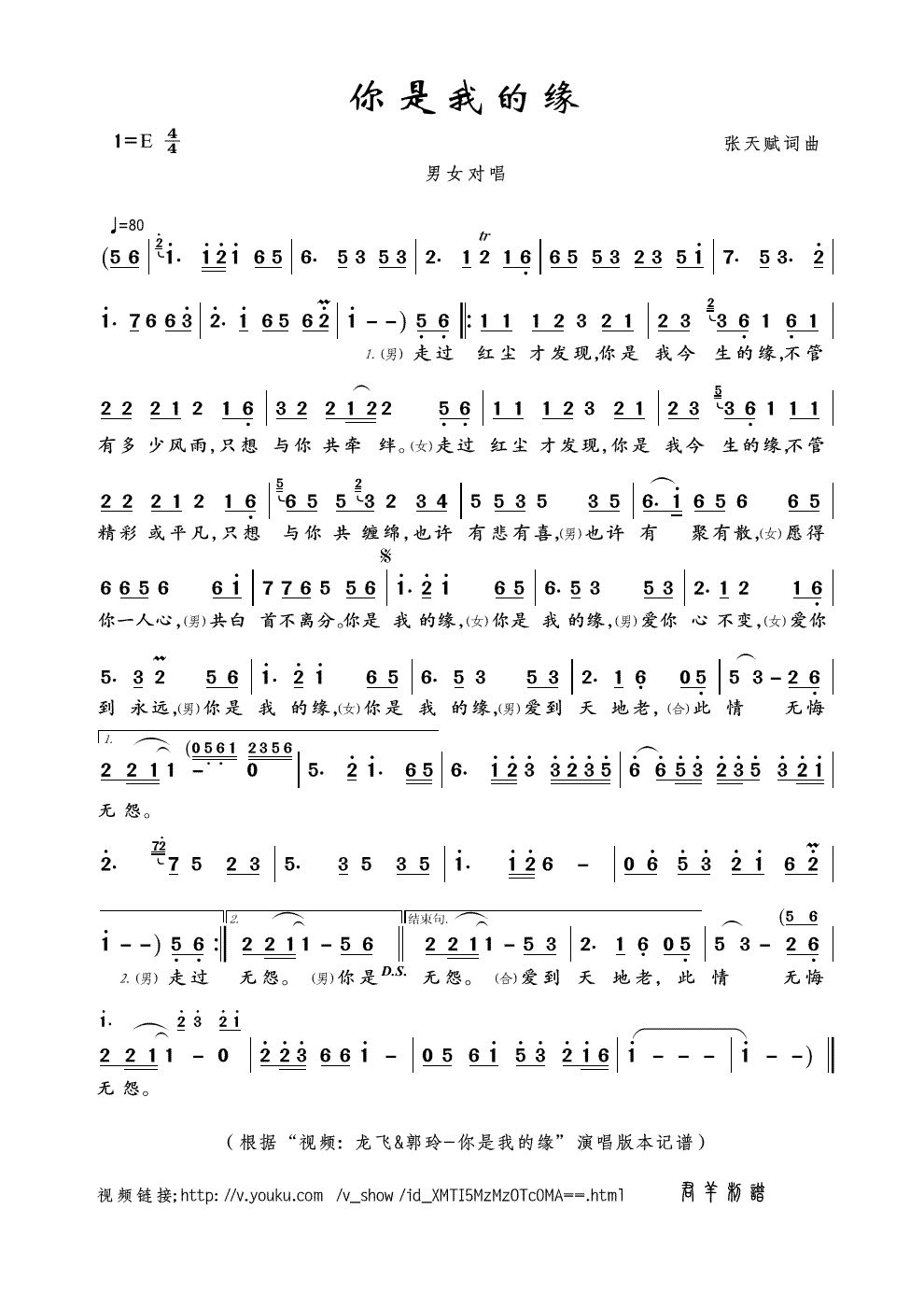 - [歌谱] 遇上你是我的缘 视频 MTV 遇上你是我的缘 叶凡 本