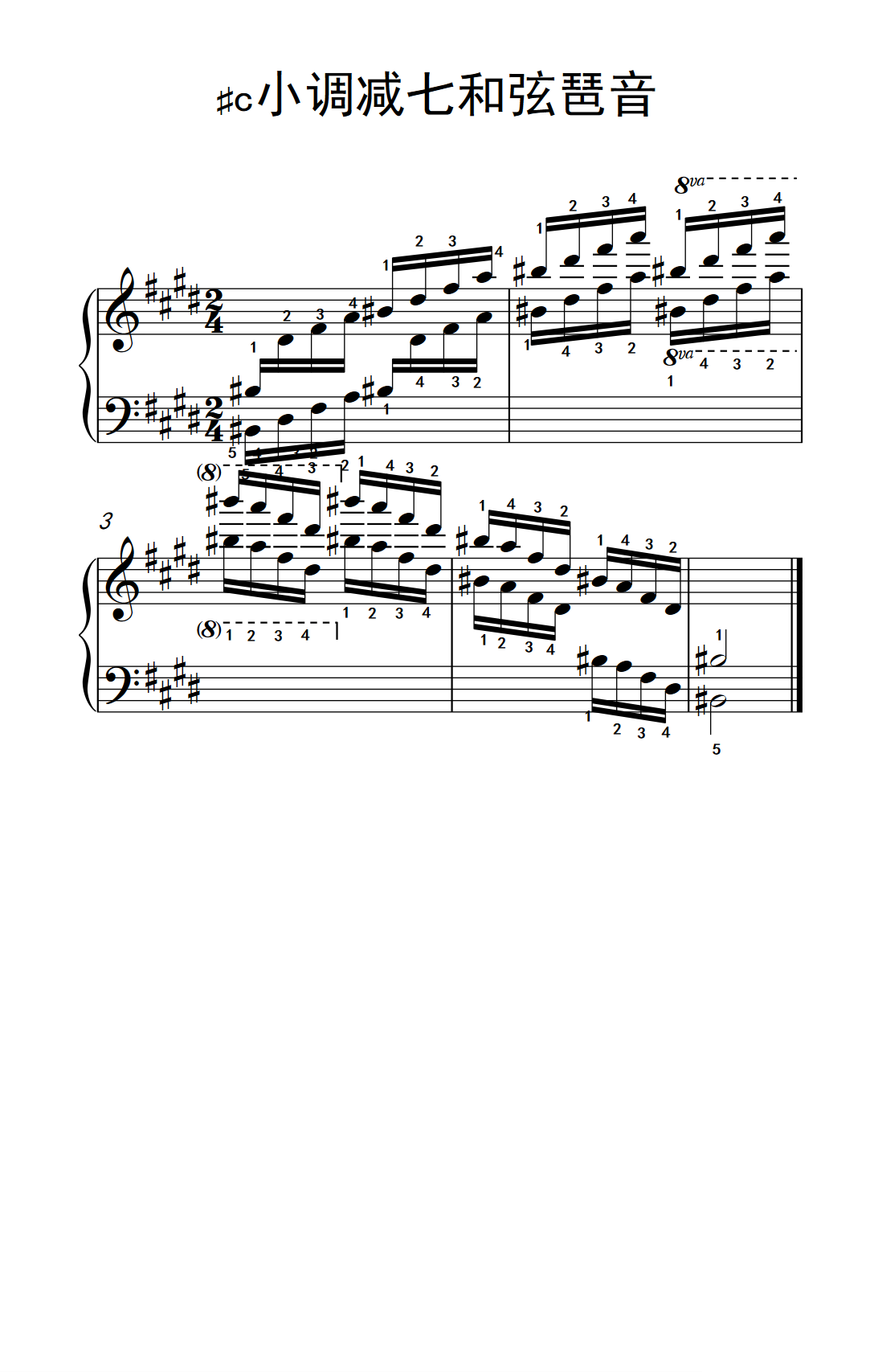 > 第六级 10 ?c小调减七和弦琶音 中央音乐学院 钢琴 业余 考级教程 4 6级
