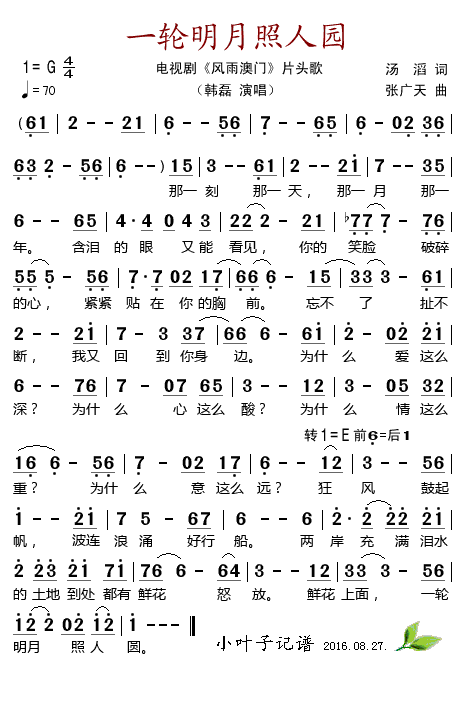 一轮明月照人圆 电视剧 风雨澳门 片头歌
