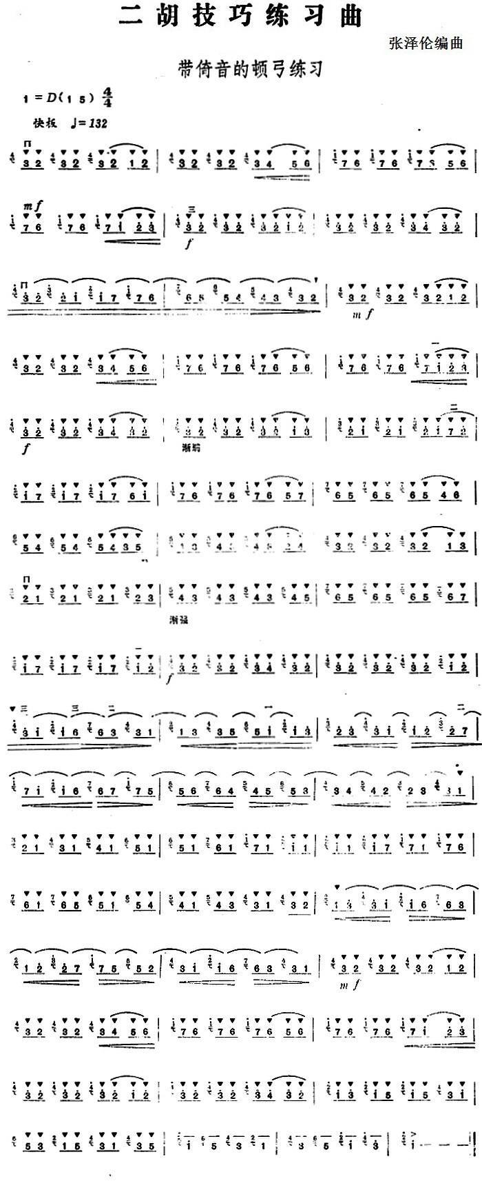 > 二胡技巧练习曲 带倚音的顿弓练习