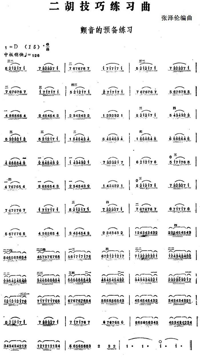 > 二胡技巧练习曲 颤音的预备练习