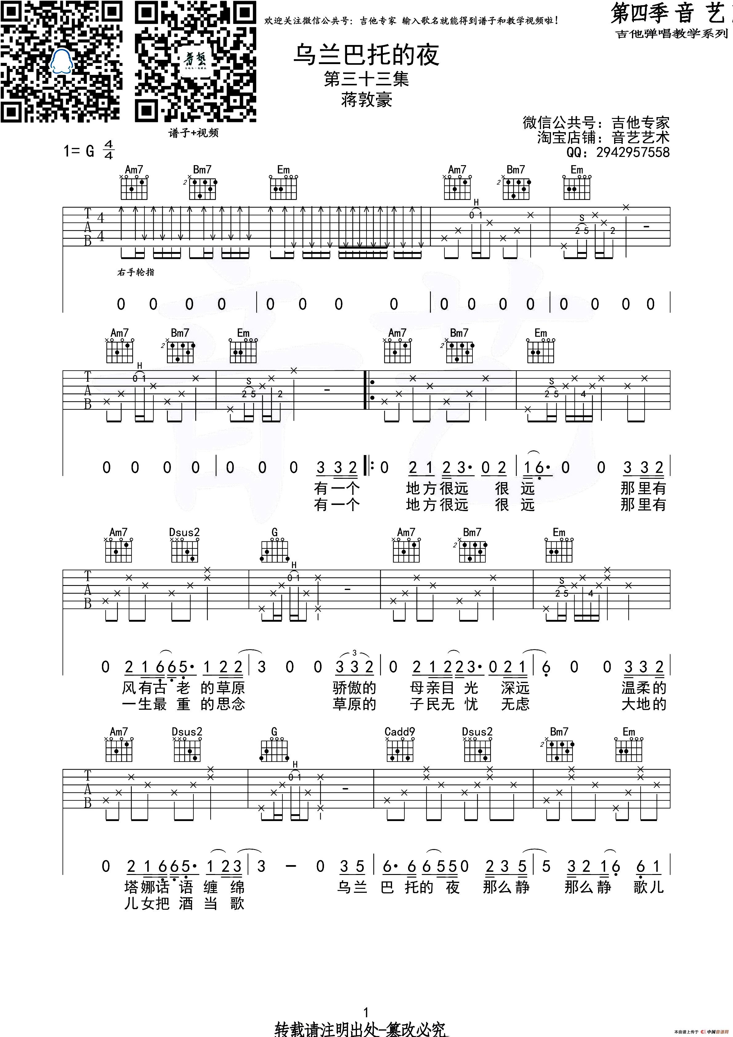 > 乌兰巴托的夜 吉他