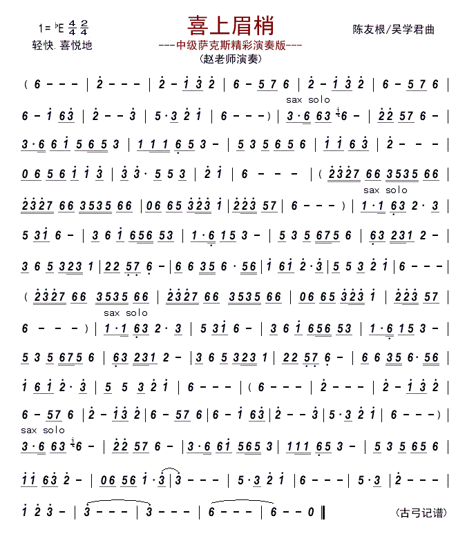> 喜上眉梢 中级萨克斯精彩演奏版
