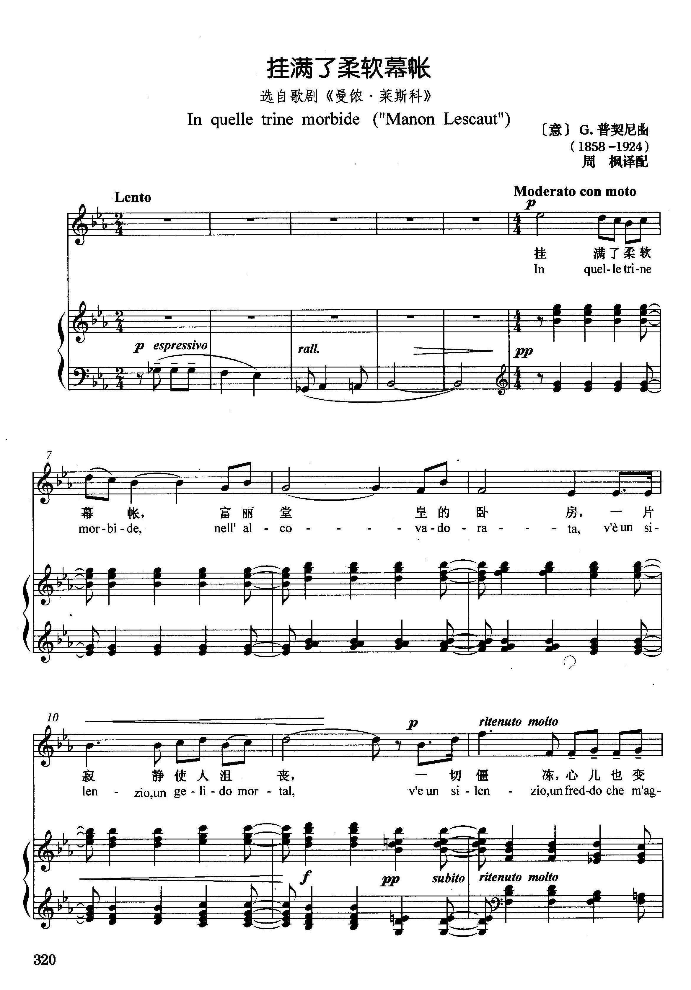 > 意 挂满了柔软幕帐 选自歌剧 曼侬 莱斯科