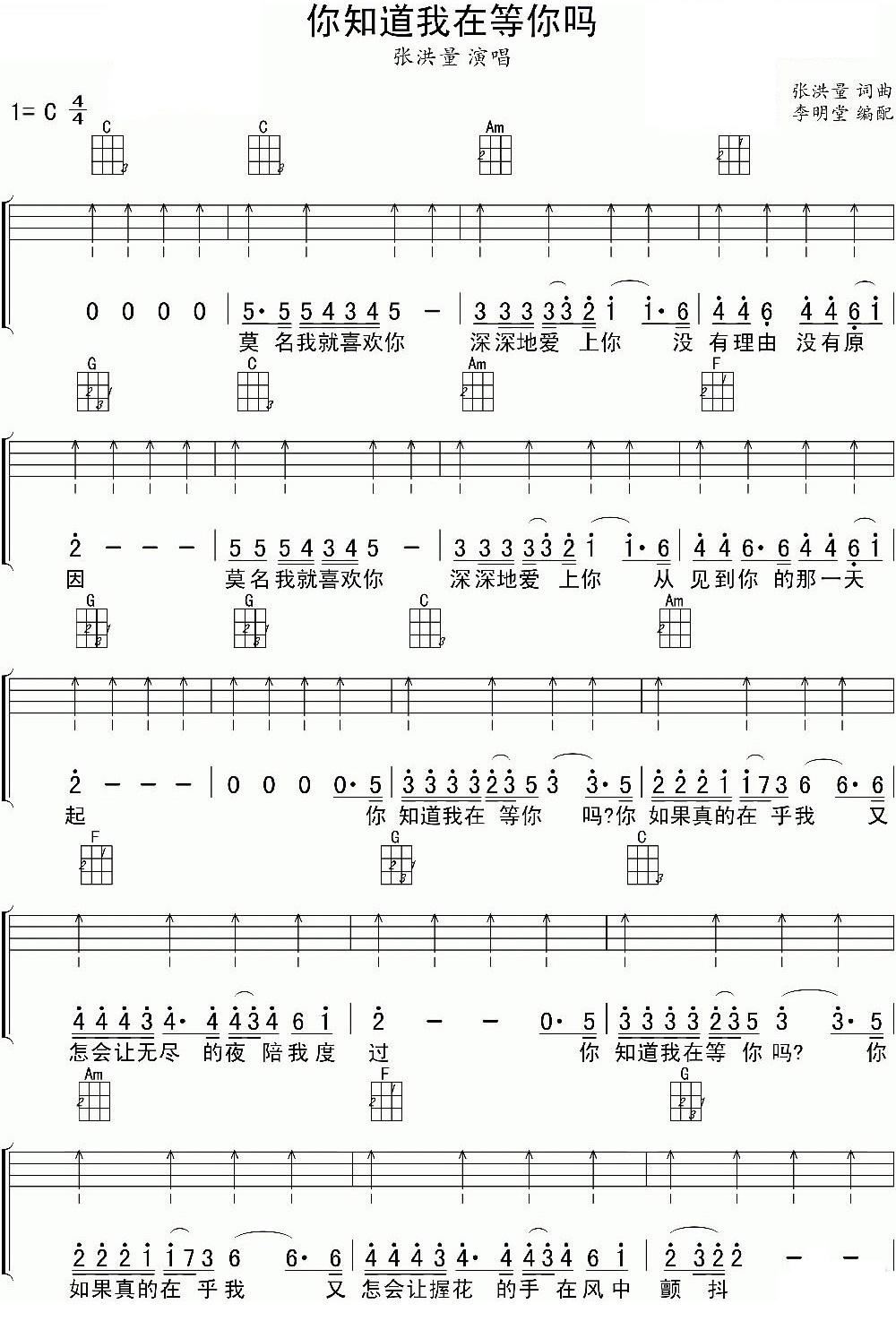 > 你知道我在等你吗 尤克里里弹唱谱