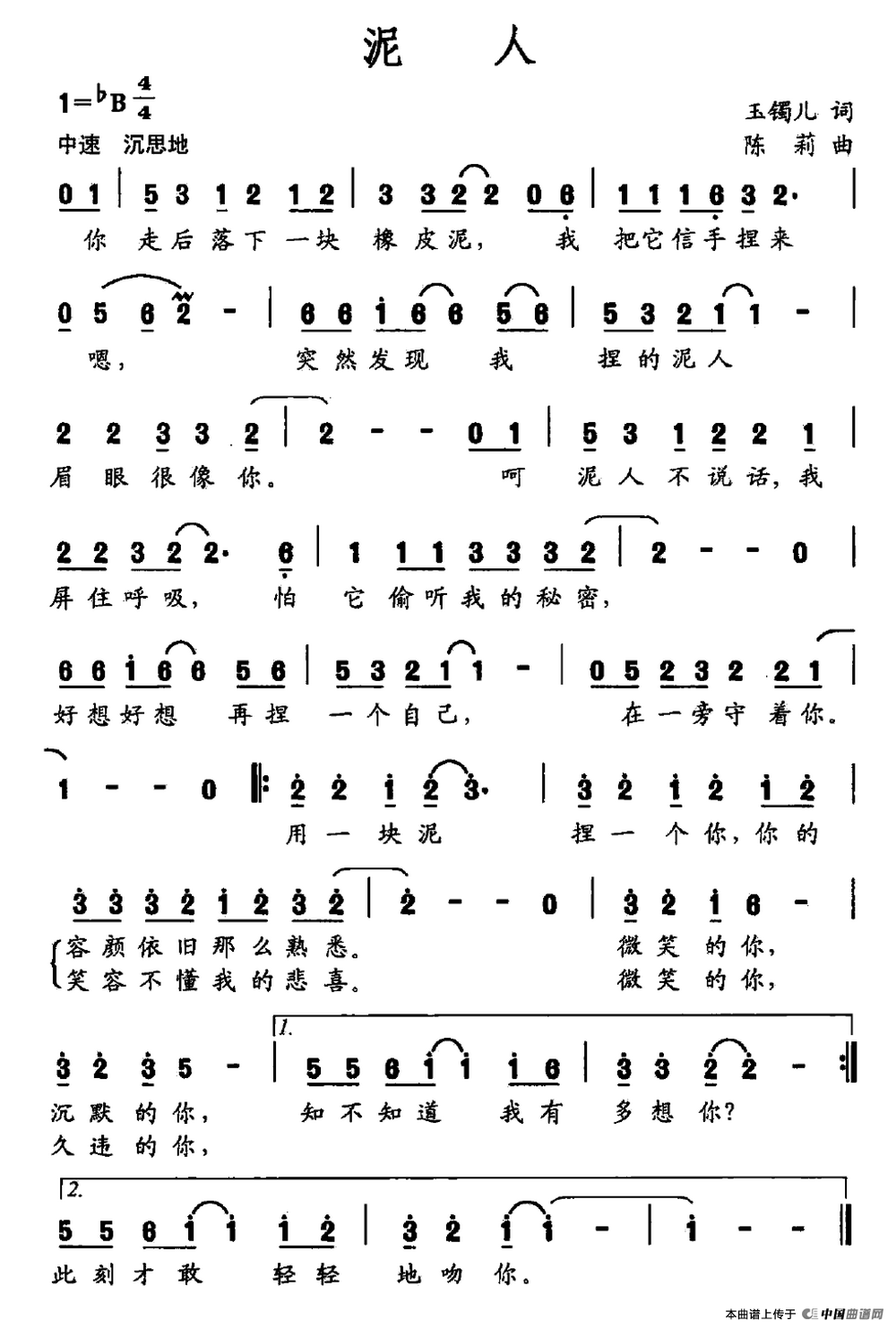 - [歌谱] 捏泥人 电视剧 天桥梦 片尾曲