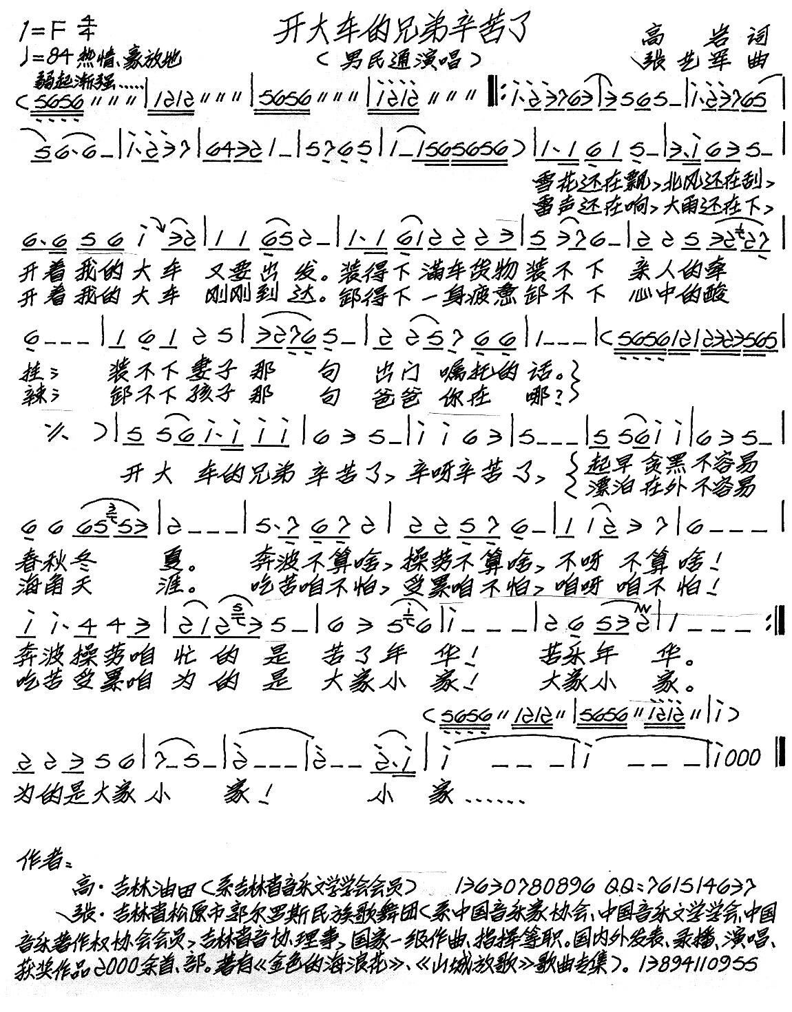 - [歌谱] 大车兵的歌