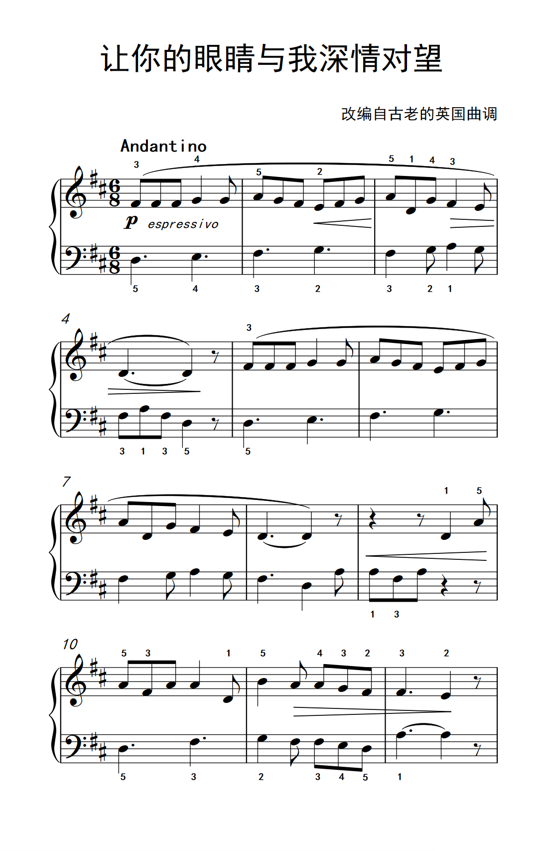 让你的眼睛与我深情对望 约翰 汤普森 成人钢琴教程 第一册