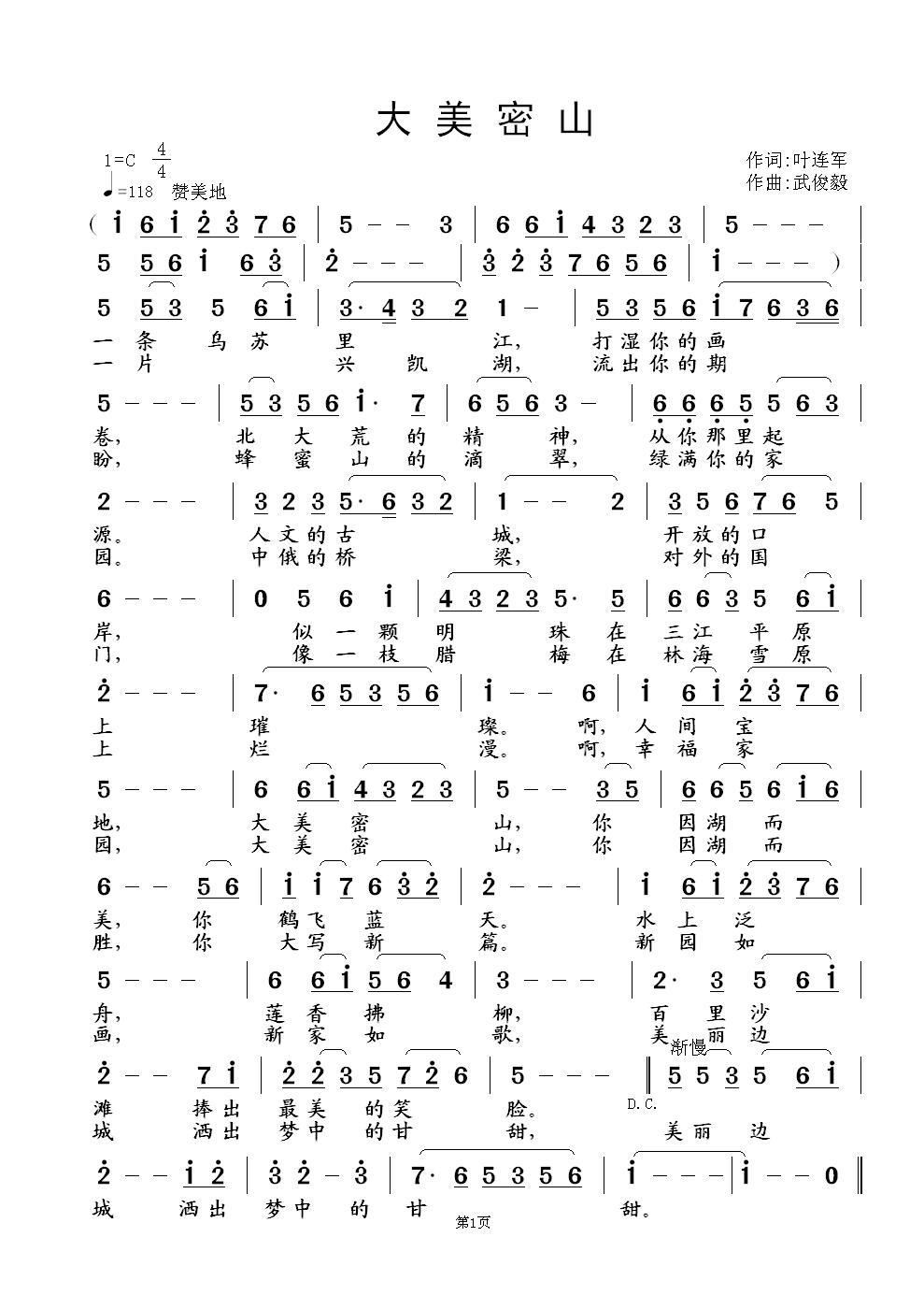 - [歌谱] 甜甜的密山甜甜的爱恋