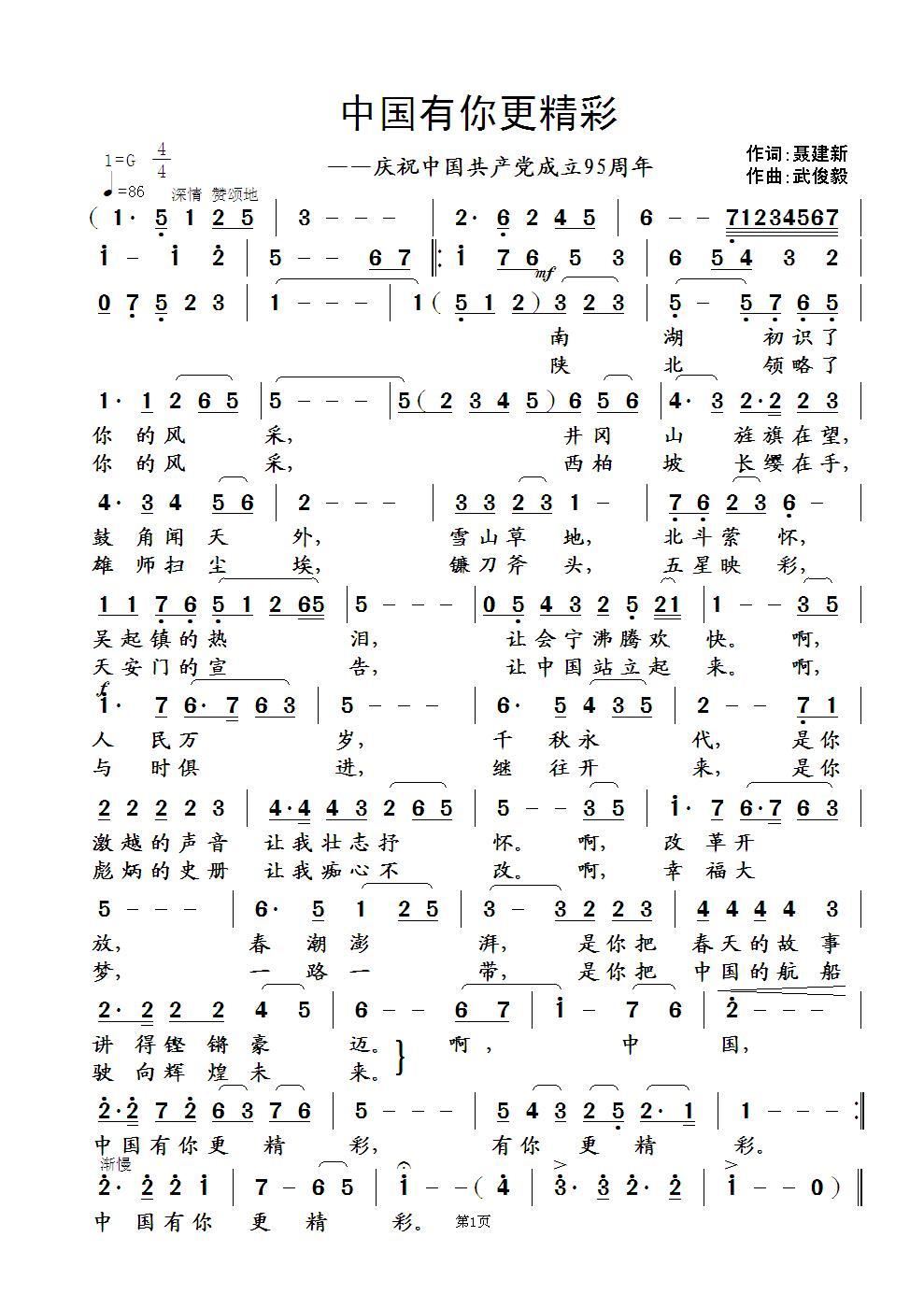 - [歌谱] 中国有你