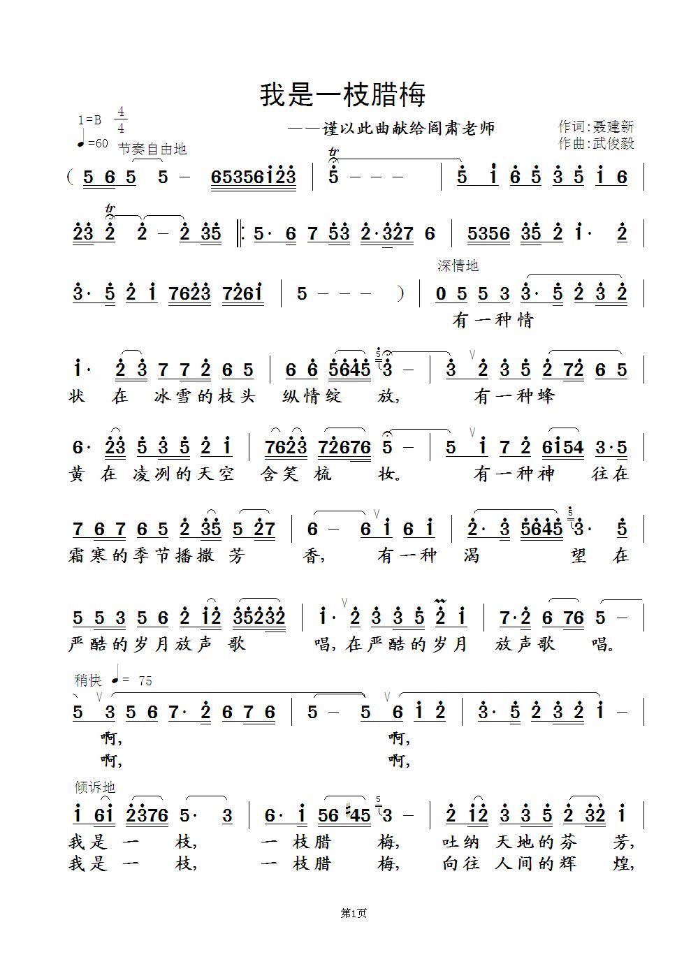 - [歌谱] 我是一枝腊梅