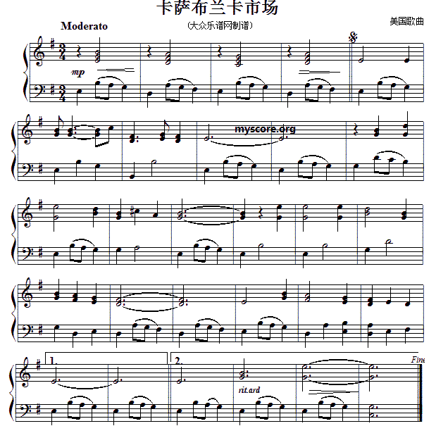 流行钢琴小曲 卡萨布兰卡市场