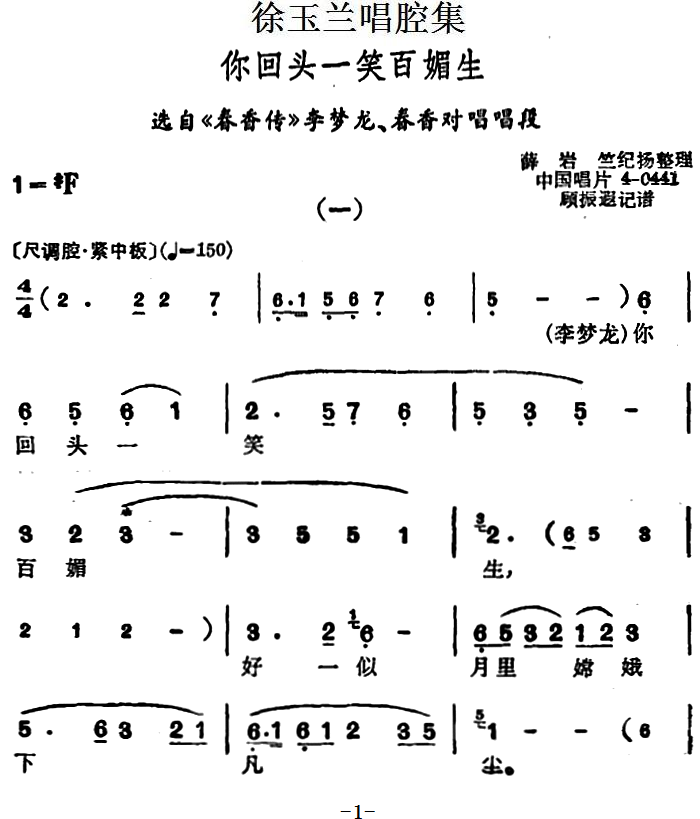 徐玉兰唱腔集 你回头一笑百媚生 选自 春香传 李梦龙 春香对唱唱段