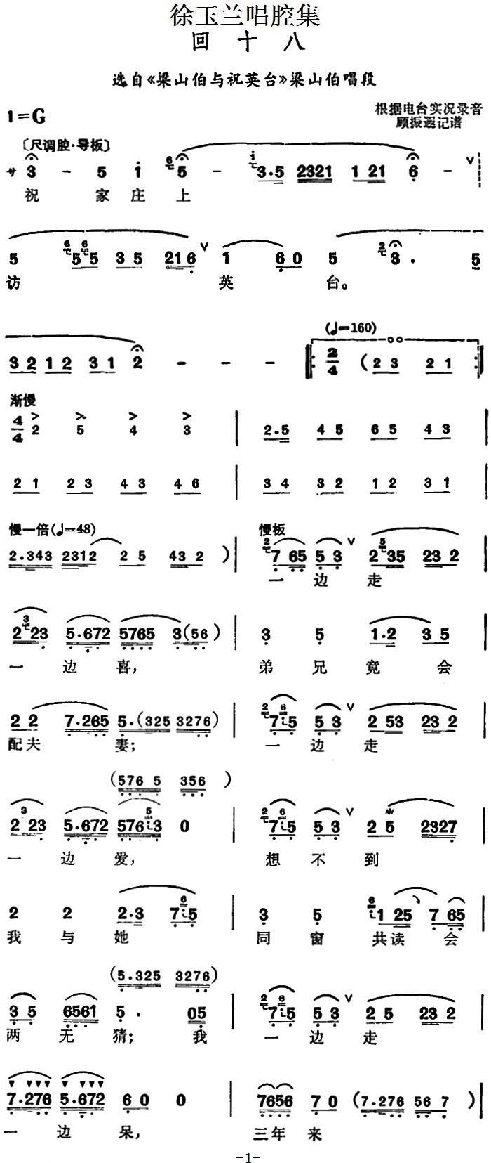 徐玉兰唱腔集 回十八 选自 梁山伯与祝英台 梁山伯唱段