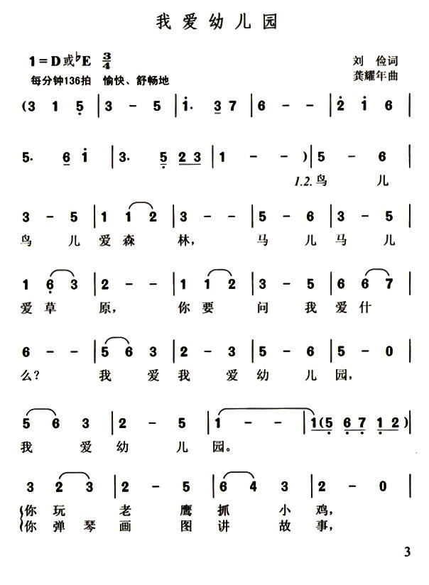 我爱我的幼儿园 F调