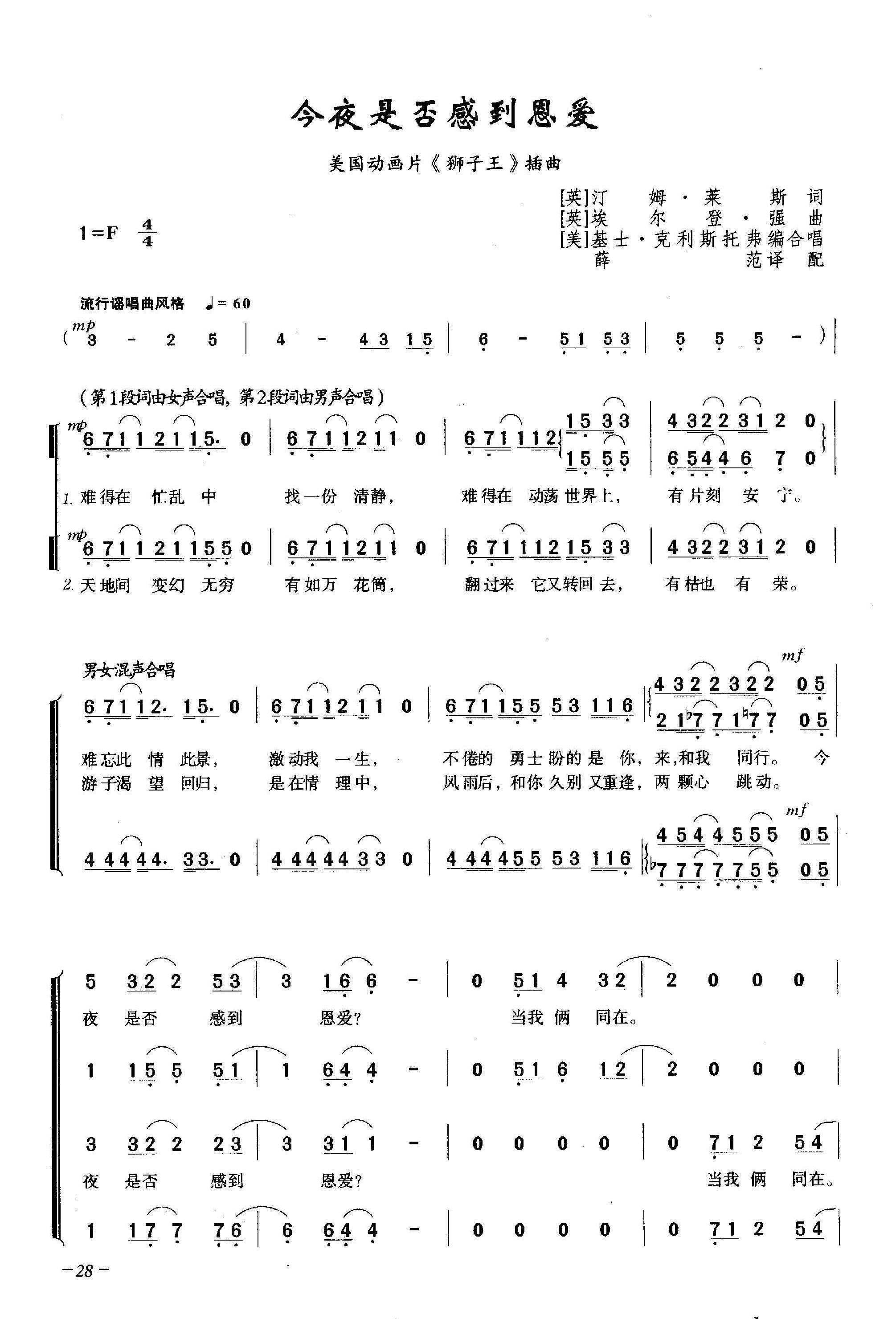 今夜你是否感到恩爱 美国动画片 狮子王 插曲