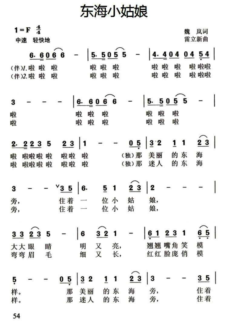 - [歌谱] 小姑娘