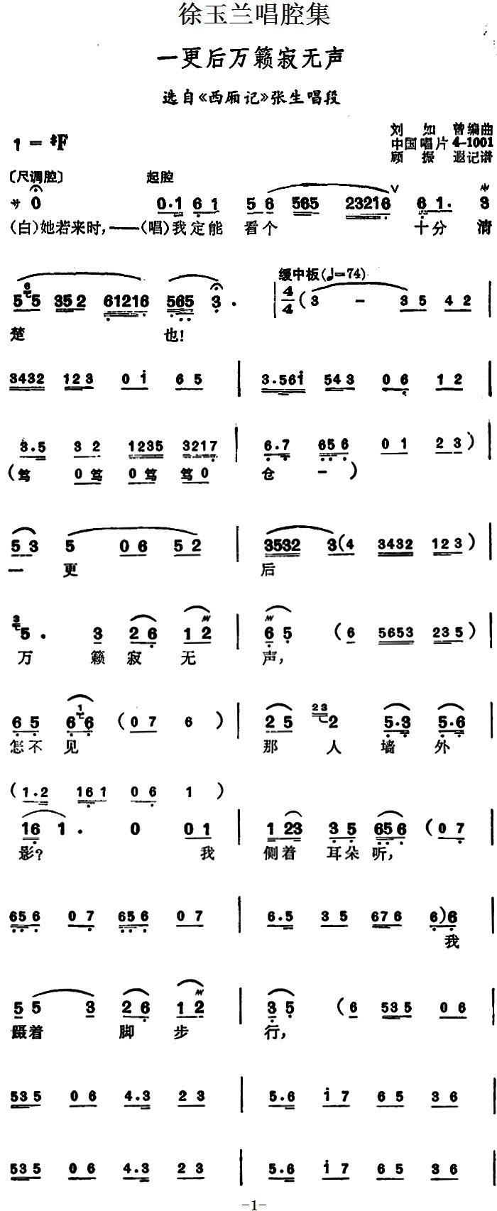 徐玉兰唱腔集 一更后万籁寂无声 选自 西厢记 张生唱段