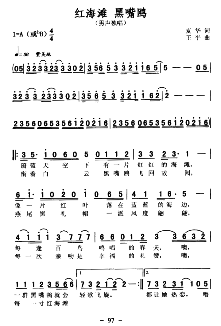 - [歌谱] 红海滩 黑嘴鸥