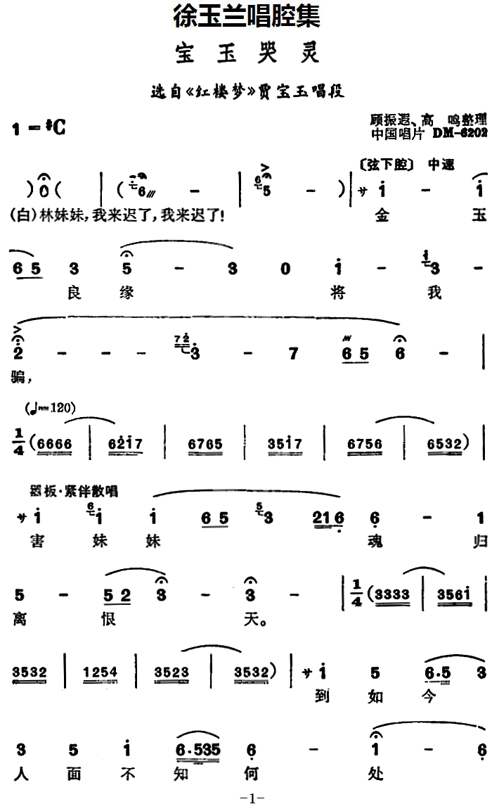 徐玉兰唱腔集 宝玉哭灵 选自 红楼梦 贾宝玉唱段