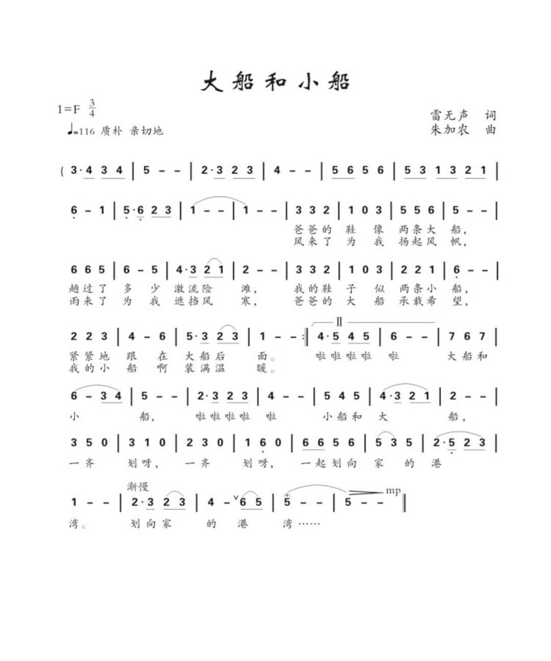 - [歌谱] 小船和大船