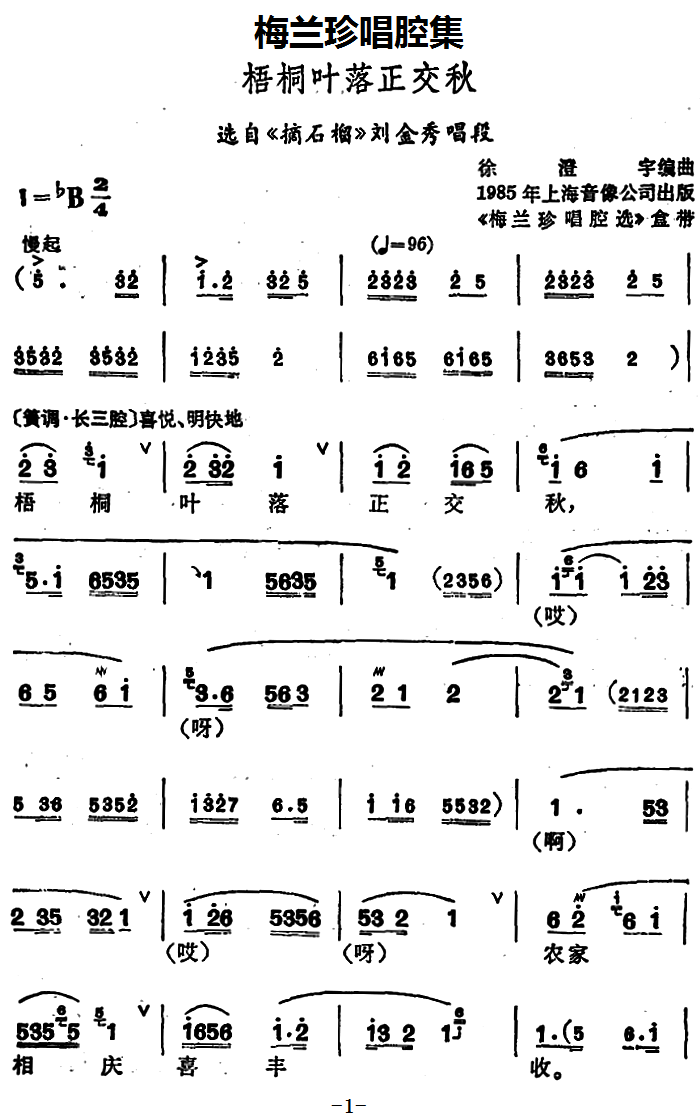锡剧 梅兰珍唱腔集 梧桐叶落正交秋 选自 摘石榴 刘金秀唱段
