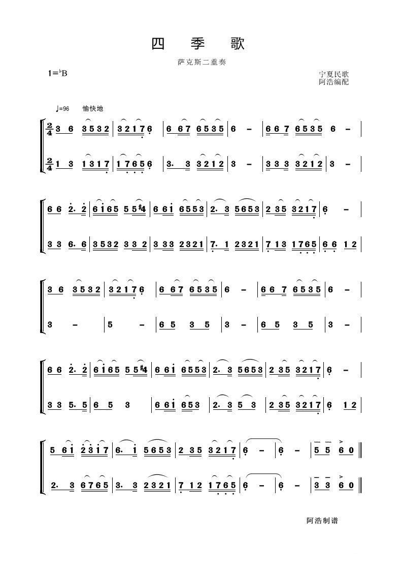 四季歌 萨克斯二重奏